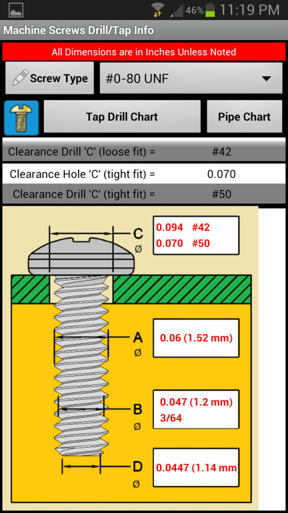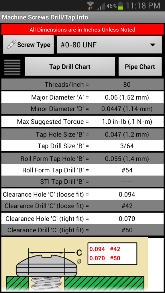 Machine Screws Drill/Tap Info
