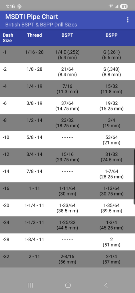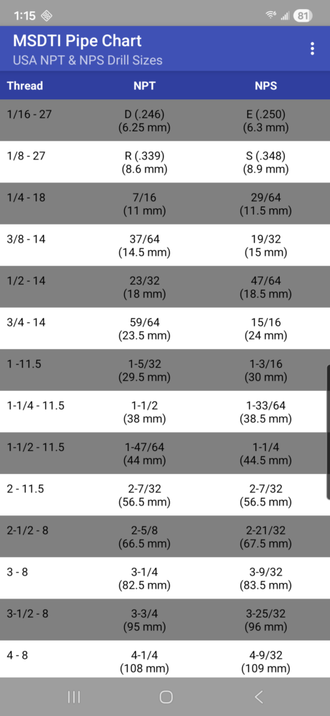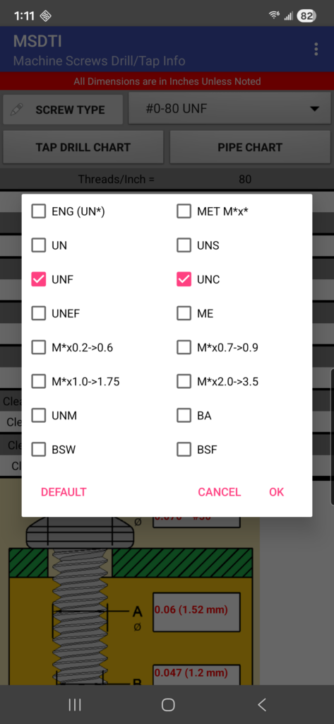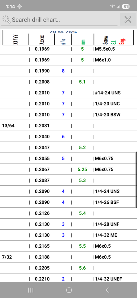 Machine Screws Drill/Tap Info