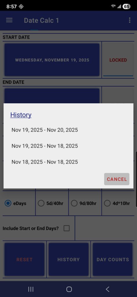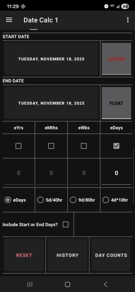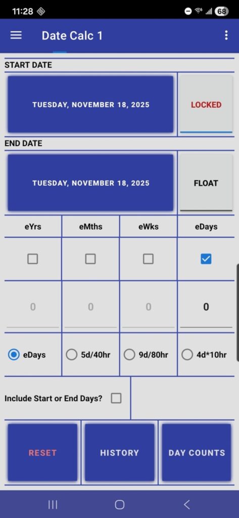 As a project engineer / project manager I needed an easy to use and accurate date calculator. Also since I work on a 9/80 work schedule (sometimes a 4 day 10 hr schedule), being able to know how ‘off-Fridays’ impact available working days was a must. Additionally, calculations must match those expensive project scheduling applications everyone uses on their desktops.